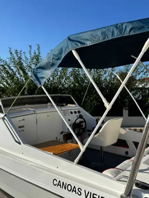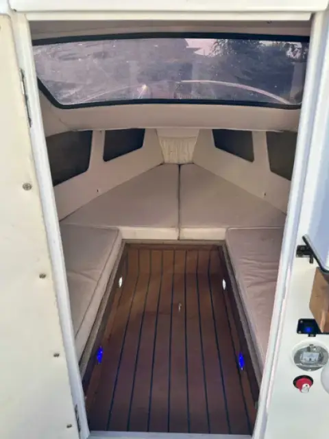 Cabine para conforto em estadias mais prolomgadas na agua, permite guardar material, trocar de roupa ou se abrigar, faz qualquer época do ano , não pretendo trocas nem ofertas descabidas, pare, pense bem e some tudo o esta na embarcação, navega maioritariamente em agua doce, mantido em garagem climatizada,